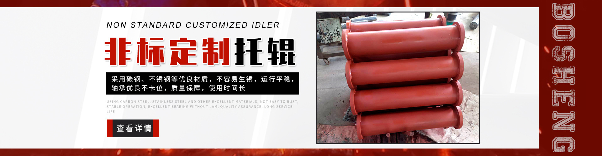 泰安博晟礦山機(jī)械有限公司位于山東泰安新泰市汶南鎮(zhèn)陳糧村。緊鄰京滬、京福、萊新高速公路。公路交通極為方便,環(huán)境優(yōu)美。公司主要生產(chǎn):托輥、托輥配件、托輥支架等皮帶輸送機(jī)配件。歡迎各界商友前來(lái)洽談考察。聯(lián)系電話:13954880316.   泰安博晟礦山機(jī)械有限公司采用國(guó)際標(biāo)準(zhǔn)設(shè)計(jì)、制造技術(shù),將托輥的設(shè)計(jì)和制造提高到了一個(gè)更高的水平,生產(chǎn)的托輥具有小的旋轉(zhuǎn)阻力,長(zhǎng)的壽命,小的維修工作量和高的承載能力。鋼管采用托輥專用高頻焊管,管內(nèi)做去刺處理,圓度控制在特殊的公差范圍之內(nèi)。軸是按標(biāo)準(zhǔn)公差加工的冷拉鋼制造。軸承座采用進(jìn)口冷扎鋼板經(jīng)多次工藝沖壓而成。托輥管和軸承座被自動(dòng)焊接機(jī)械手焊接在一起,形成一個(gè)具有很高強(qiáng)度的整體構(gòu)造。托輥軸承采用國(guó)內(nèi)外知名品牌的大游隙深溝球雙密封軸承,使托輥具有理想的靜平衡和動(dòng)平衡,其旋轉(zhuǎn)阻力優(yōu)于國(guó)標(biāo)。托輥密封采用綜合國(guó)外和國(guó)內(nèi)迷宮式密封的特點(diǎn)進(jìn)行了專門設(shè)計(jì),內(nèi)充耐高速高溫和超低溫抗氧化鋰基酯,有效防止雜質(zhì)、水、空氣對(duì)托輥內(nèi)部的侵蝕。   目前我們托輥系列產(chǎn)品有槽形上調(diào)心托輥組、槽形托輥、槽形下調(diào)心托輥組、承載托輥、緩沖托輥、回程托輥組、螺旋托輥、摩擦上調(diào)心托輥組、平行緩沖托輥組、平行上調(diào)心托輥、礦用托輥、煤礦專用托輥、梳型托輥、樹脂托輥、陶瓷托輥、橡膠托輥、錐形托輥、立輥等。規(guī)格:直徑50-219mm;長(zhǎng)度190-2600mm。   泰安博晟礦山機(jī)械有限公司竭誠(chéng)愿與廣大客戶合作,共同發(fā)展開發(fā)新技術(shù)新項(xiàng)目。泰安博晟礦山機(jī)械有限公司秉承